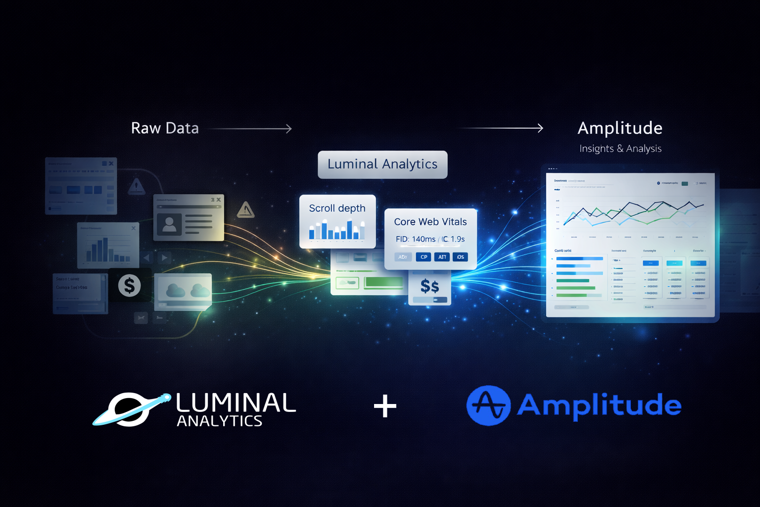 Luminal makes it simple to start collecting the signals that traditional analytics often miss — real reading time, scroll behavior, ad performance context, Core Web Vitals, and revenue attribution. Through our integration with Amplitude, that richer dataset flows directly into a platform your team already knows and trusts for analysis, segmentation, cohorts, and optimization.